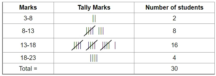 The marks obtained (out of 20) by 30 students of a class in a test are given below: