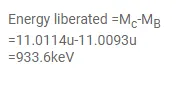 Question: The masses of ${ }^{11} \mathrm{C}$ and ${ }^{11} \mathrm{~B}$ are respectively $11.0114 \mathrm{u}$ and $11.0093 \mathrm{u}$. Find the maximum energy a positron can have in the $\beta^{+}$-decay of ${ }^{11} \mathrm{C}$ to ${ }^{11} \mathrm{~B}$.