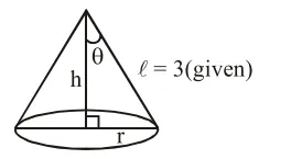 $\mathrm{V}=\frac{1}{3} \pi \mathrm{r}^{2} \mathrm{~h}=\frac{\pi}{3}\left(9 \sin ^{2} \theta\right) \cdot(3 \cos \theta)$