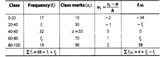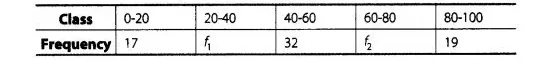 The mean of the following frequency distribution is 50 but the frequencies f1 and f2 in classes 20-40 and 60-80, respectively are not known. Find these