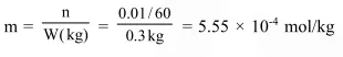 Question: The molality of a urea solution in which $0.0100 \mathrm{~g}$ of urea, $\left[\left(\mathrm{NH}_{2}\right)_{2} \mathrm{CO}\right]$ is added to $0.3000 \mathrm{dm}^{3}$ of water at STP is :-