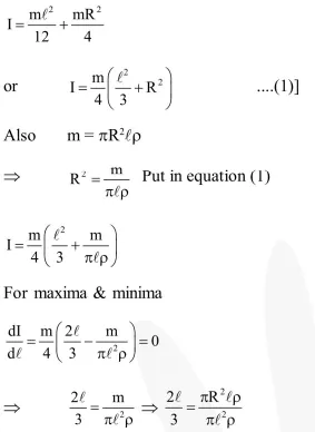 Question: The moment of inertia of a uniform cylinder of length $\ell$ and radius $\mathrm{R}$ about its perpendicular bisector is I. What is the ratio $\ell / R$ such that the moment of inertia is minimum ?