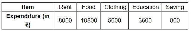 The monthly income of family is ₹ 28800. The monthly expenditure of the family on various items is given below.