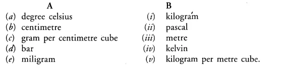 The non $\mathrm{SI}$ and $\mathrm{Sl}$ units of some physical quantities are given in column $\mathrm{A}$ and column $\mathrm{B}$ respectively. Match the units belonging to the same physical quantity: