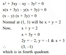 Question: The normal to the curve, $x^{2}+2 x y-3 y^{2}=0$, at $(1,1)$ :