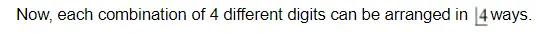 $\therefore$ Number of four digits with no repetitions $={ }^{10} \mathrm{C}_{4} \times\left\lfloor 4=\frac{\lfloor 10}{|4| 6} \times\lfloor 4=7 \times 8 \times 9 \times 10=5040\right.$