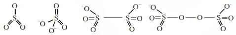 Question: The number of $\mathrm{S}-\mathrm{S}$ bonds in $\mathrm{SO}_{3}, \mathrm{~S}_{2} \mathrm{O}_{3}{ }^{2-}, \mathrm{S}_{2} \mathrm{O}_{6}{ }^{2-}$ and $\mathrm{S}_{2} \mathrm{O}_{8}{ }^{2-}$ respectively are :-