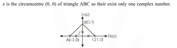 The number of complex numbers $\mathrm{z}$ such that $|\mathrm{z}-1|=|\mathrm{z}+1|=|\mathrm{z}-\mathrm{i}|$ equals :-