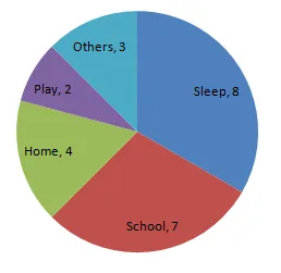 | Sleep | 8 | 8/24 360 = 120o |