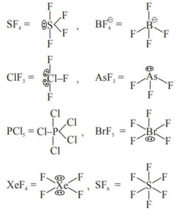 Two l.p. on central atom is $=\mathrm{ClF}_{3}, \mathrm{XeF}_{4}$