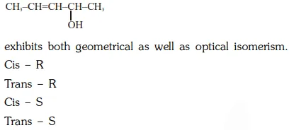 The number of stereoisomers possible for a compound of the molecular formula $\mathrm{CH}_{3}-\mathrm{CH}=\mathrm{CH}-\mathrm{CH}(\mathrm{OH})-\mathrm{Me}$ is :-