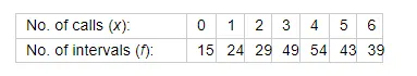 The number of telephone calls received at an exchange per interval for 250 successive one-minute intervals are given in the following frequency table: