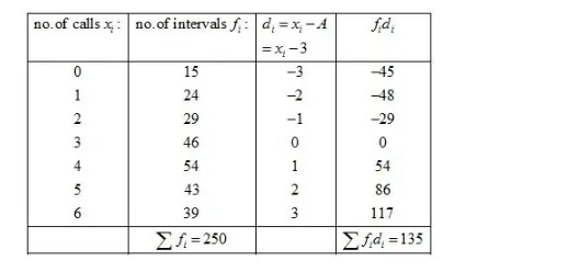 Here, we have $N=\sum f_{i}=250, \sum f_{i} d_{i}=135$ and $A=3$.