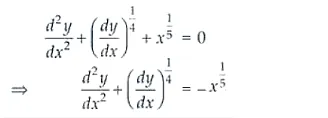 $\frac{d^{2} y}{d x^{2}}+\left(\frac{d y}{d x}\right)^{\frac{1}{4}}+x^{\frac{1}{5}}=0$