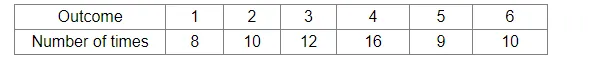 $\therefore P($ getting a prime number $)=P(E)=\frac{\text { Number of times prime number s occur }}{\text { Total number of throws }}=\frac{(10+12+9)}{65}=\frac{31}{65}$