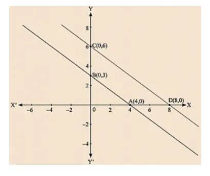The path of a train A is given by the equation 3x + 4y -12 = 0 and the path of another train B is given by the equation 6x + 8y - 48 = 0. Represent this situation graphically.