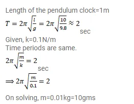 The pendulum of a clock is replaced by a spring-mass system with the spring having spring constant $0.1 \mathrm{~N} / \mathrm{m}$. What mass should be attached to the spring?