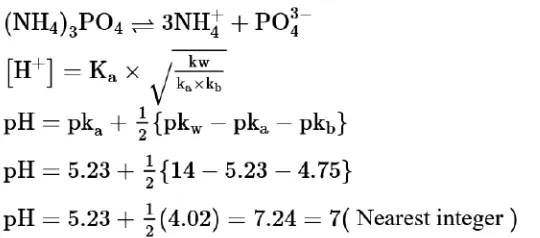 The $\mathrm{pH}$ of ammonium phosphate solution, if $\mathrm{pk}_{\mathrm{a}}$ of phosphoric acid and $\mathrm{pk}_{\mathrm{b}}$ of ammonium hydroxide are $5.23$ and $4.75$ respectively, is