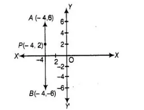 From the figure, point P(- 4,2) lies on the line segment joining the points A(- 4,6) and B(- 4, – 6),