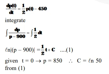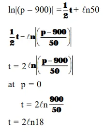 The population $p(t)$ at time $t$ of a certain mouse species satisfies the differential equation $\frac{\mathrm{dp}(\mathrm{t})}{\mathrm{dt}}$ $=0.5 \mathrm{p}(\mathrm{t})-450$. If $\mathrm{p}(0)=850$, then the time at which the population becomes zero is :