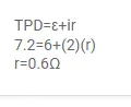 The potential difference between the terminals of a $6.0 \mathrm{~V}$ battery is $7.2 \mathrm{~V}$ when it is being charged by a current of $2.0 \mathrm{~A}$. What is the internal resistance of the battery?