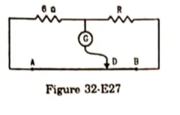 The potentiometer wire $A B$ shown in figure (32-E27) is $50 \mathrm{~cm}$ long. When $A D=30 \mathrm{~cm}$, no deflection occurs in the galvanometer. Find R.