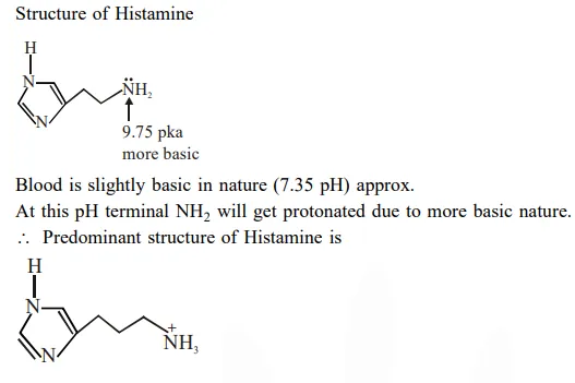 The predominant form of histamine present in human blood is ( $\mathrm{pK}_{\mathrm{a}}$, Histidine $=6.0$ )