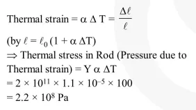 (For steel Young's modulus is $2 \times 10^{11} \mathrm{~N} \mathrm{~m}^{-2}$ and coefficient of thermal expansion is $1.1 \times 10^{-5} \mathrm{~K}^{-1}$ )