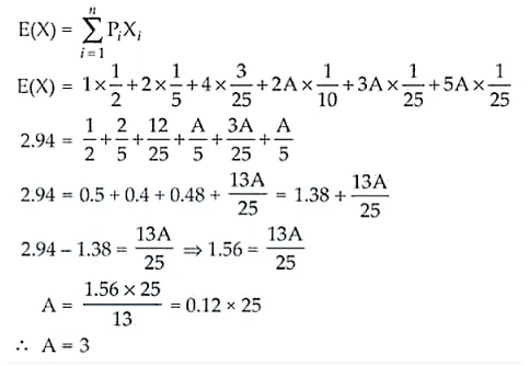 (i) The value of A if E(X) = 2.94