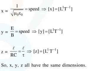 The quantities $\quad x=\frac{1}{\sqrt{\mu_{0} \in_{0}}}, y=\frac{E}{B} \quad$ and $\mathrm{z}=\frac{1}{\mathrm{CR}}$ are defined where $\mathrm{C}$-capacitance,
