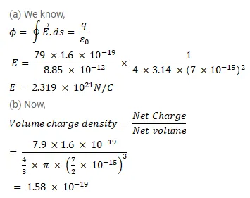 (b) at the middle point of a radius. Remembering that gold is a conductor, is it justified to assume that the positive charge is uniformly distributed over the entire volume of the nucleus and does not come to the outer surface?