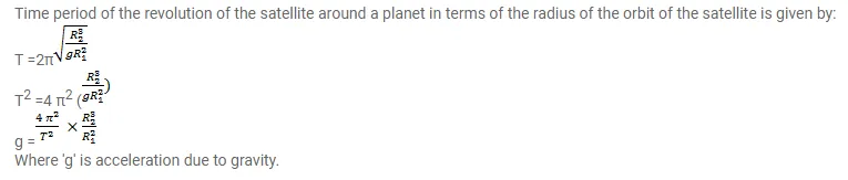 Question: The radius of a planet is $\mathrm{R}$, and a satellite revolves round it in a circle of radius $\mathrm{R} 2$. The time period of revolution is $\mathrm{T}$. Find the acceleration due to the gravitation of the planet at its surface.