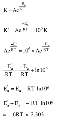 Question: The rate of a certain biochemical reaction at physiological temperature (T) occurs $10^{6}$ times faster with enzyme than without. The change in the activation energy upon adding enzyme is: