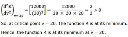and $v$ is the speed of the engine. Show that $R$ is the least when $v=20$.