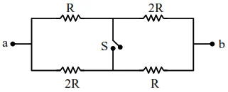 $\mathrm{R}_{\text {eq closed }}=2 \times \frac{\mathrm{R} \times 2 \mathrm{R}}{3 \mathrm{R}}=\frac{4 \mathrm{R}}{3}$