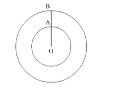 Let OA = r be the radius of the inner circle and OB = r′ be the radius of the outer circle.