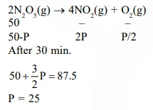 follows first order kinetics. The pressure of a vessel containing only $\mathrm{N}_{2} \mathrm{O}_{5}$ was found to increase from $50 \mathrm{~mm} \mathrm{Hg}$ to $87.5 \mathrm{~mm} \mathrm{Hg}$ in $30 \mathrm{~min}$. The pressure exerted by the gases after $60 \mathrm{~min}$.