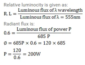 The relative luminosity of wavelength $600 \mathrm{~nm}$ is $0.6$. Find the radiant flux of $600 \mathrm{~nm}$ needed to produce the same brightness sensation as produce by $120 \mathrm{~W}$ of radiant at $555 \mathrm{~nm}$.