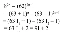 The remainder left out when $8^{2 \mathrm{n}}-(62)^{2 \mathrm{n}+1}$ is divided by 9 is :-