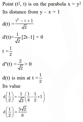 The shortest distance between the line $\mathrm{y}-\mathrm{x}=1$ and the curve $\mathrm{x}=\mathrm{y}^{2}$ is :-