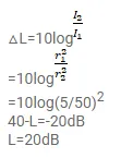 The sound level at a point $5.0 \mathrm{~m}$ away from a point source is $40 \mathrm{~dB}$. What will be the level at a point $50 \mathrm{~m}$ away from the source?