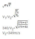 The speed of sound as measured by a student in the laboratory on a winter day is $340 \mathrm{~m} \mathrm{~s}$ when the room temperature is ${\mathrm{C} 17^{\circ}}^{\circ}$. What speed will be measured by another student repeating the experiment on a day when the room temperature is $32^{\circ} \mathrm{C}$ ?
