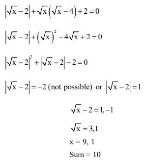 The sum of the solutions of the equation $|\sqrt{x}-2|+\sqrt{x}(\sqrt{x}-4)+2=0,(x>0)$ is equal to :