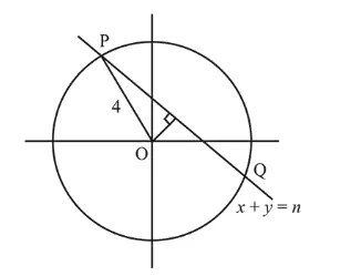 Then, length of chord $P Q=2 \sqrt{4^{2}-\left(\frac{n}{\sqrt{2}}\right)^{2}}$