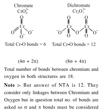 The sum of the total number of bonds between chromium and oxygen atoms in chromate and dichromate ions is