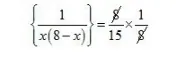 $\left\{\frac{8-\not x+\not x}{x(8-x)}\right\}=\frac{8}{15}$