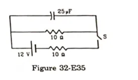 The Switch S shown in figure (32-E35) is kept closed for a long time and is then opened at $t=0$
