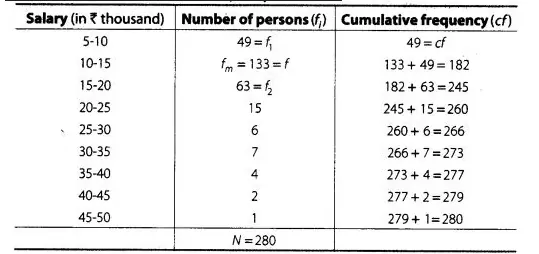 The table below shows the salaries of 280 persons.