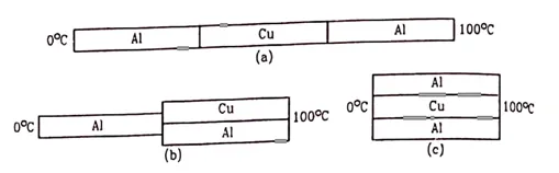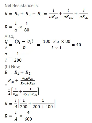 (c). Thermal conductivities of aluminium and copper are $200 \mathrm{~W} / \mathrm{m}-{ }^{\circ} \mathrm{C}$ and $400 \mathrm{~W} / \mathrm{m}-{ }^{\circ} \mathrm{C}$ respectively.