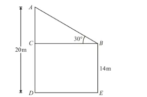 The tops of two poles of height 20 m and 14 m are connected by a wire. If the wire makes an angle of 30° with horizontal, then the length of the wire is